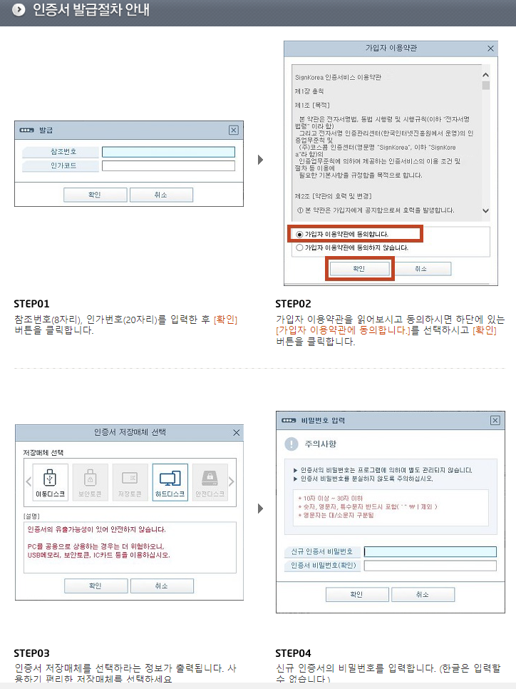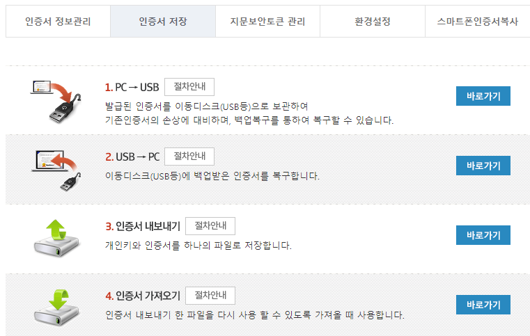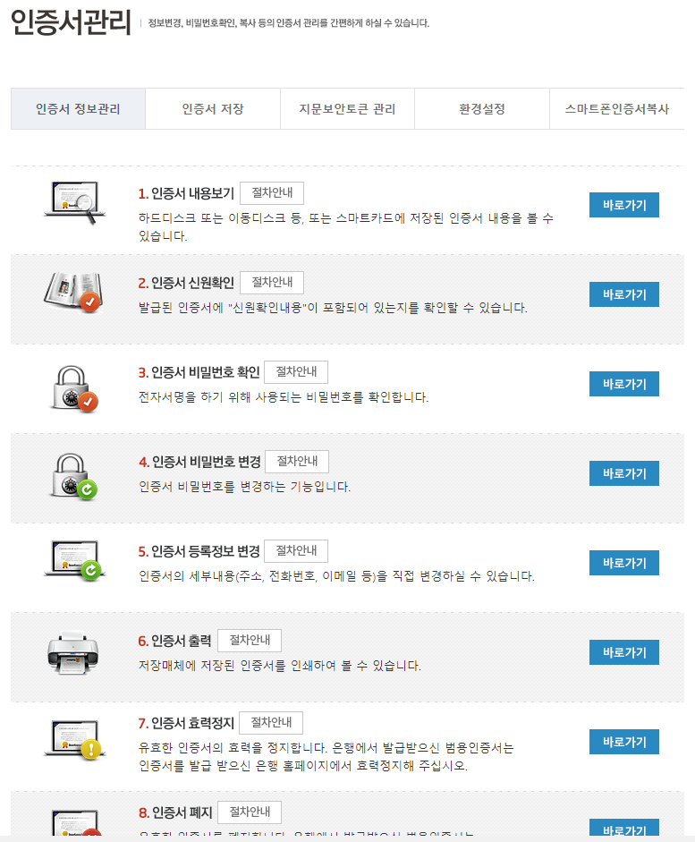 공동인증서 인터넷 신청 방법 인증서 관리 방법