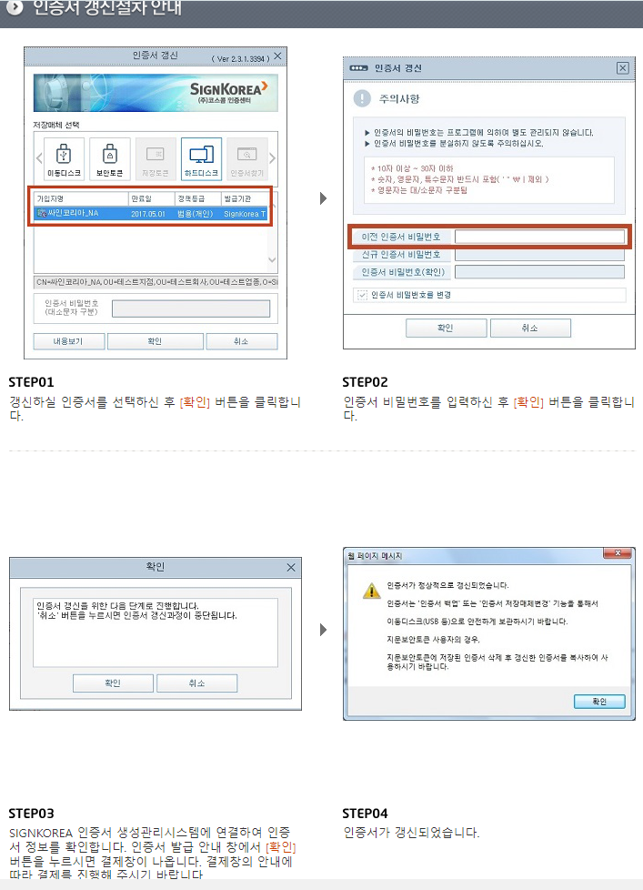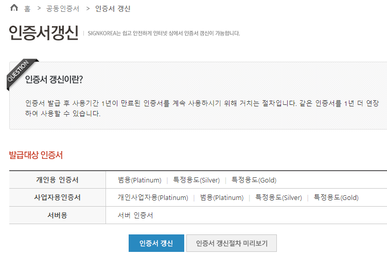 공동인증서 인터넷 신청 방법 인증서 갱신 방법