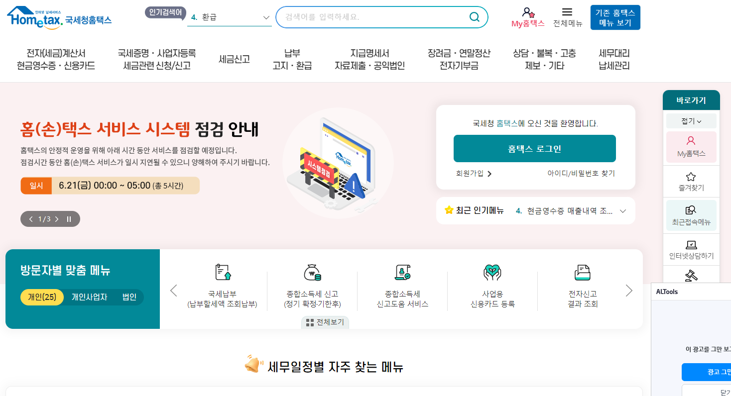 1. 국세청홈택스 홈페이지 접속하기