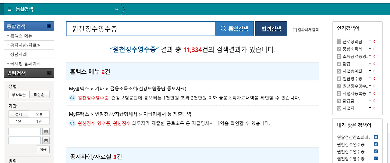 근로소득원천징수영수증 인터넷발급