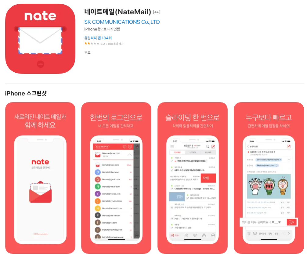 네이트 메일 바로가기 App Store 앱