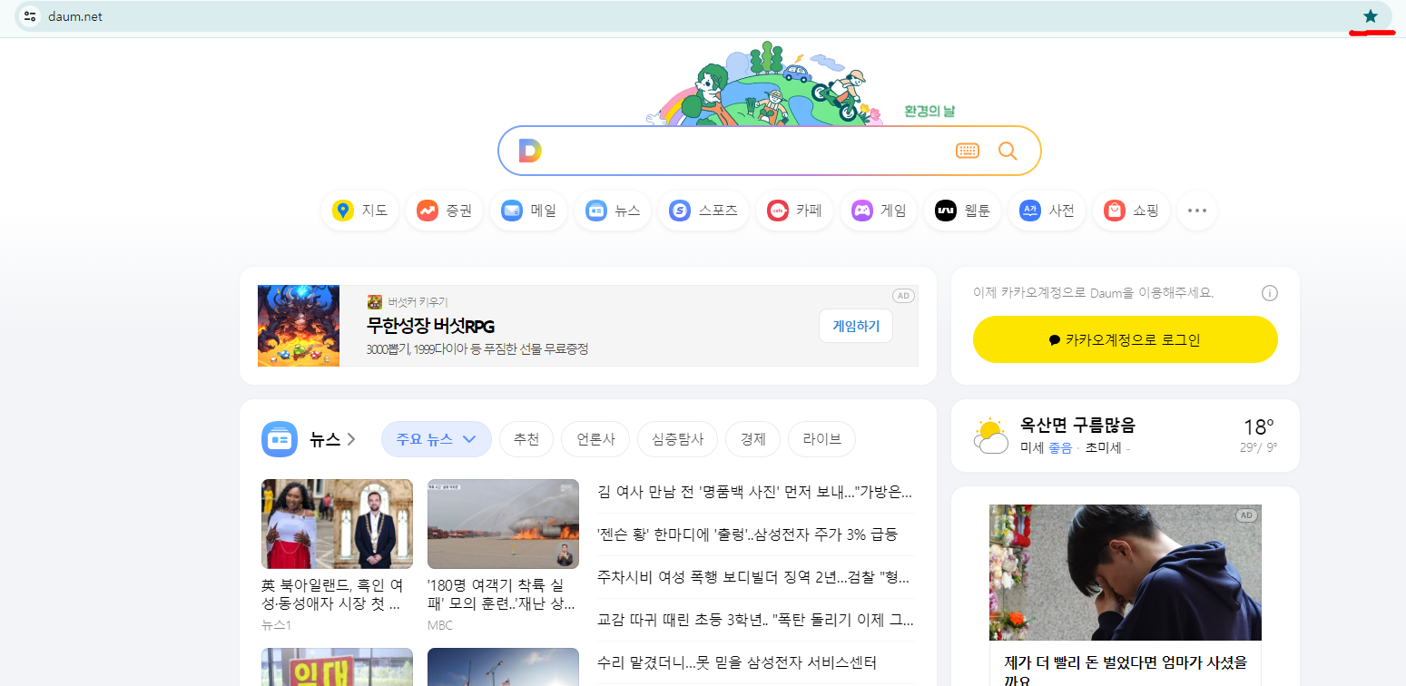 다음 홈페이지에 접속하여 북마크(즐겨찾기) 를 추가 버튼을 누르면 됩니다.