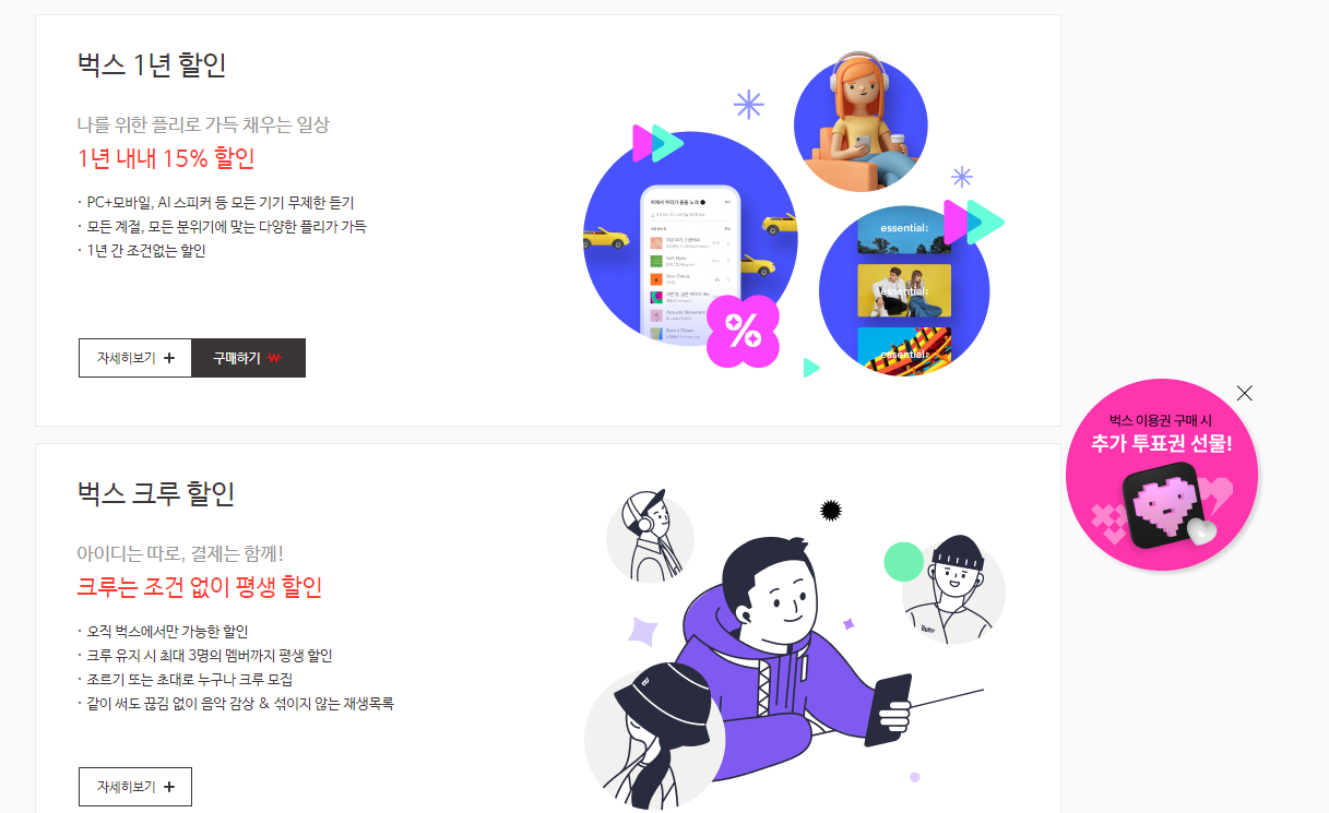 벅스 홈페이지 접속 벅스 VIP 멤버십 안내