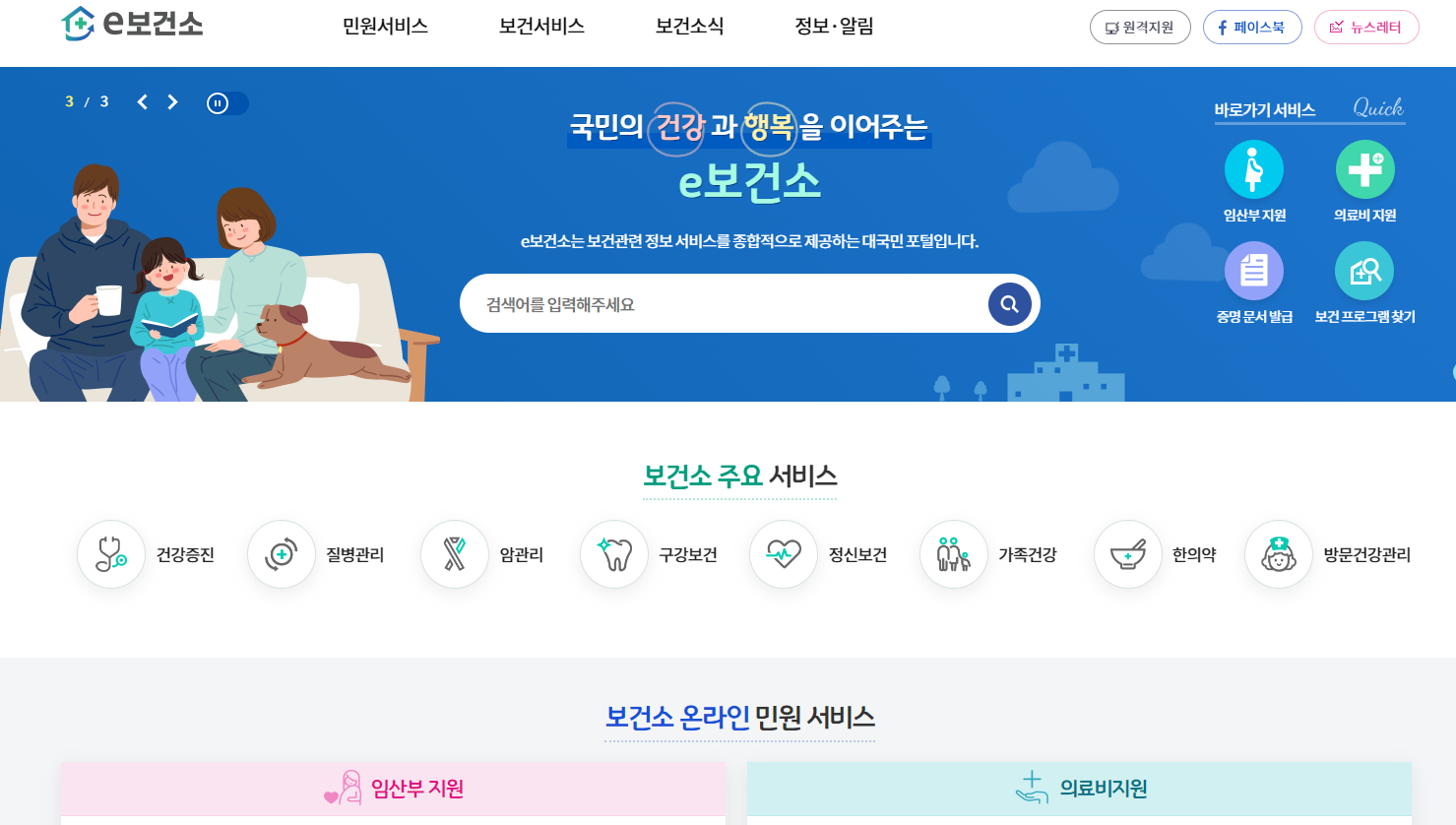 보건복지부 운영 온라인민원 서비스,보건증 등 제증명 발급, 의료비지원, 동네보건소정보, 보건교육신청 등 안내