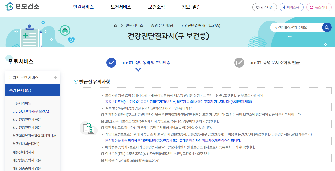 보건증(건강진단결과서)인터넷발급-e보건소 공공보건포털
