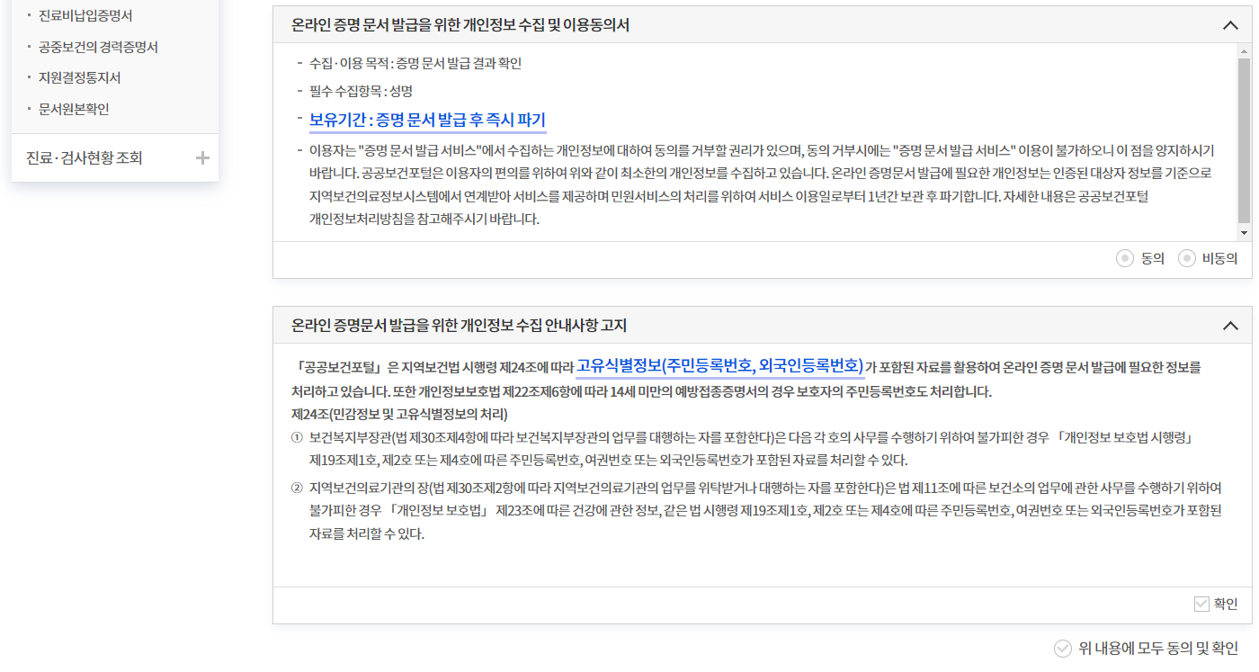 답 공공보건포털(e보건소) 온라인민원서비스는 별도 회원가입 없이 본인확인(본인인증) 후 "서비스 신청, 증명 문서 발급, 진료·검사현황조회 서비스"를 이용할 수 있습니다