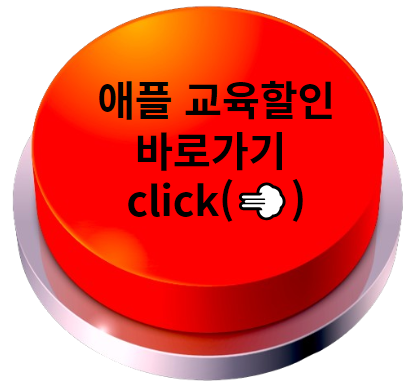 애플은 종종 교육기관 및 학생, 교사를 위한 교육 할인 프로그램을 제공합니다. 이 프로그램을 통해 학생, 교사, 교육기관 구성원들은 애플 제품을 할인된 가격으로 구매할 수 있습니다. 일반적으로 이러한 할인은 MacBook, iMac, iPad, 및 다른 애플 제품에 적용될 수 있습니다. 이러한 할인을 받기 위해서는 대부분의 경우, 학생이나 교사임을 확인할 수 있는 증명서나 학교 이메일 등을 제출해야 합니다. 할인 정책은 국가마다 다를 수 있으므로, 자세한 내용은 애플 공식 웹사이트나 근처의 애플 스토어에서 확인하시는 것이 좋습니다.