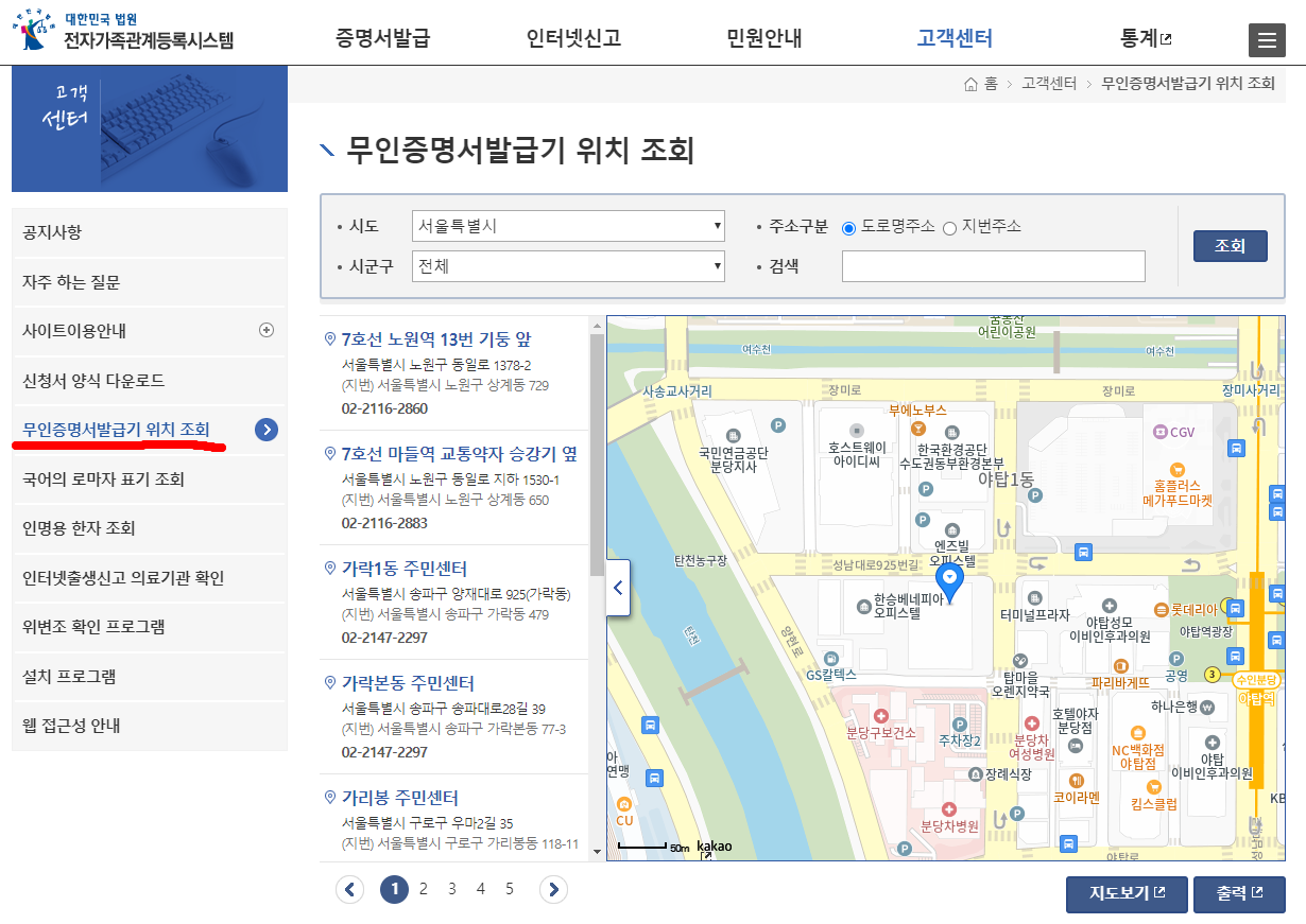 혼인관계증명서 인터넷발급 무인증명서발급기 위치 조회
