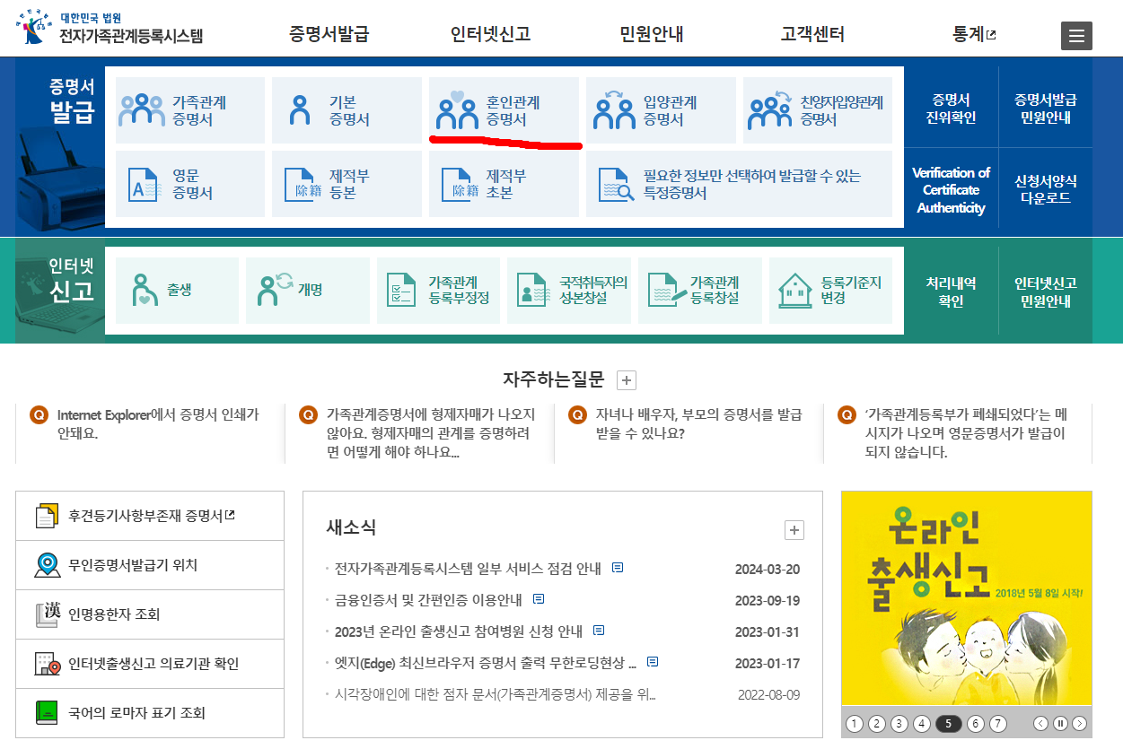 혼인관계증명서 인터넷발급 인터넷증명서 발급 방법 안내