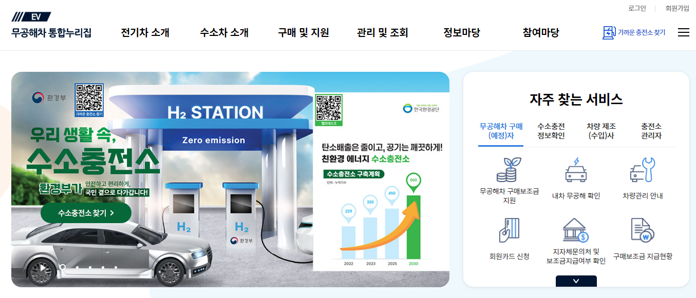 환경부 전기차 충전소 전기차 충전기 무공해차 통합 누리집 홈페이지 수소차 충전정보