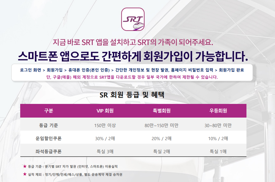 SRT 홈페이지 바로가기- SRT 앱